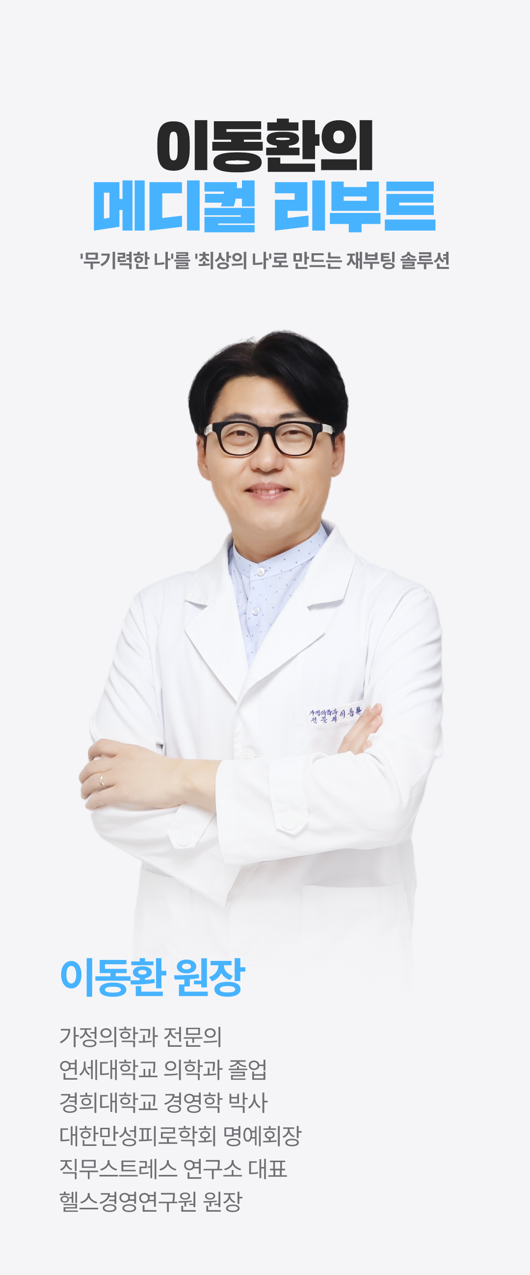 우리나라 기능의학 1세대 의사이며 국내에서 심신의학 만성피로 클리닉을 최초로 만들었습니다.