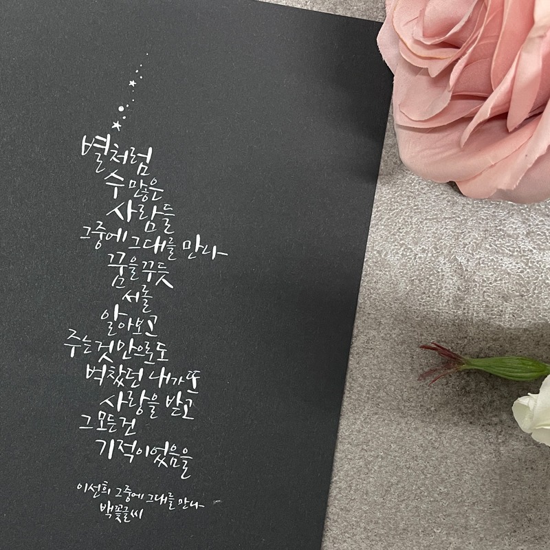 직접 쓴 캘리그라피를 소중한 사람에게 선물하면서