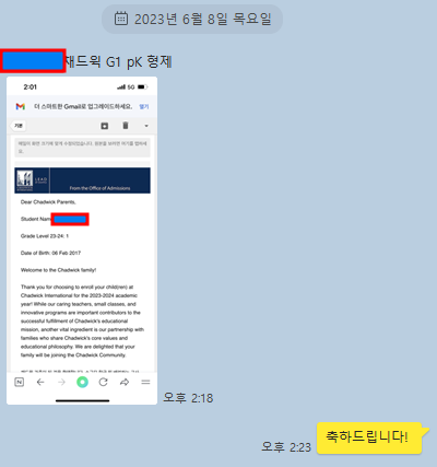 진행을 하기보다는 아이와 본인의 특성, 그리고 채드윅 국제학교의 입시 방향에 대해