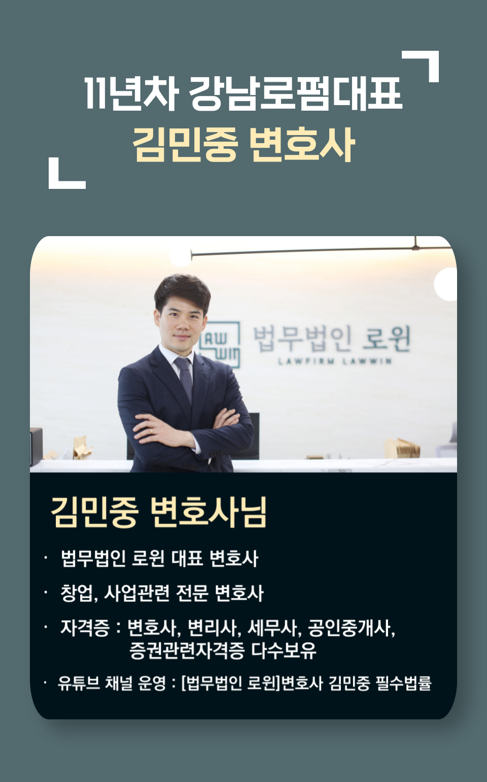 ▶ 유튜브 채널 운영 : [법무법인 로윈]변호사 김민중 필수법률