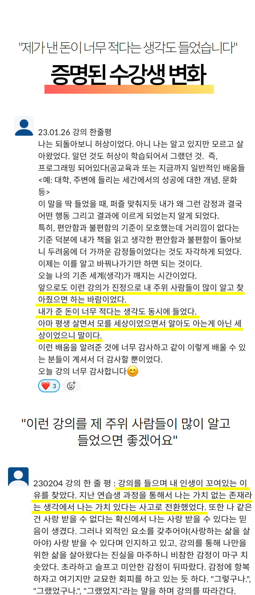수강 후 우리들의 변화