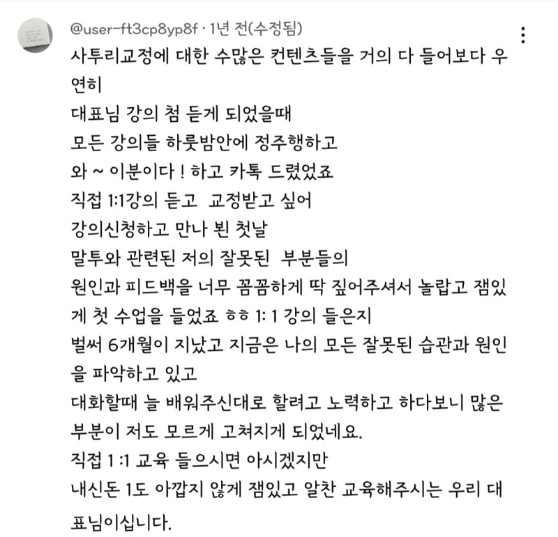 ✓ 아무리 고치려고 해도 고쳐지지 않는 사투리를 교정하고 싶은 분