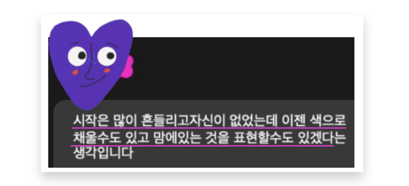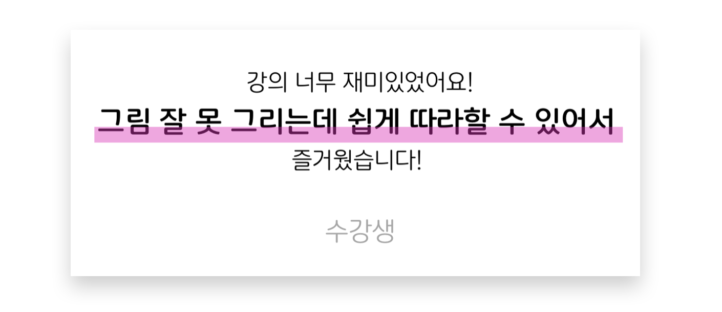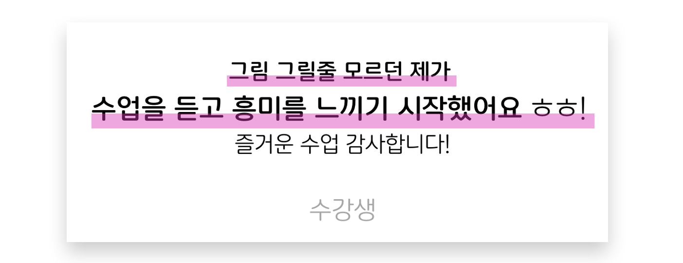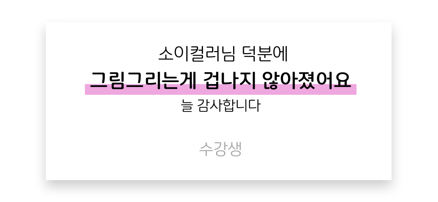 완강 후에 어떤 그림을 그리더라도 컬러 선택과 그리기가 보다 쉽게 느껴질 거예요.”