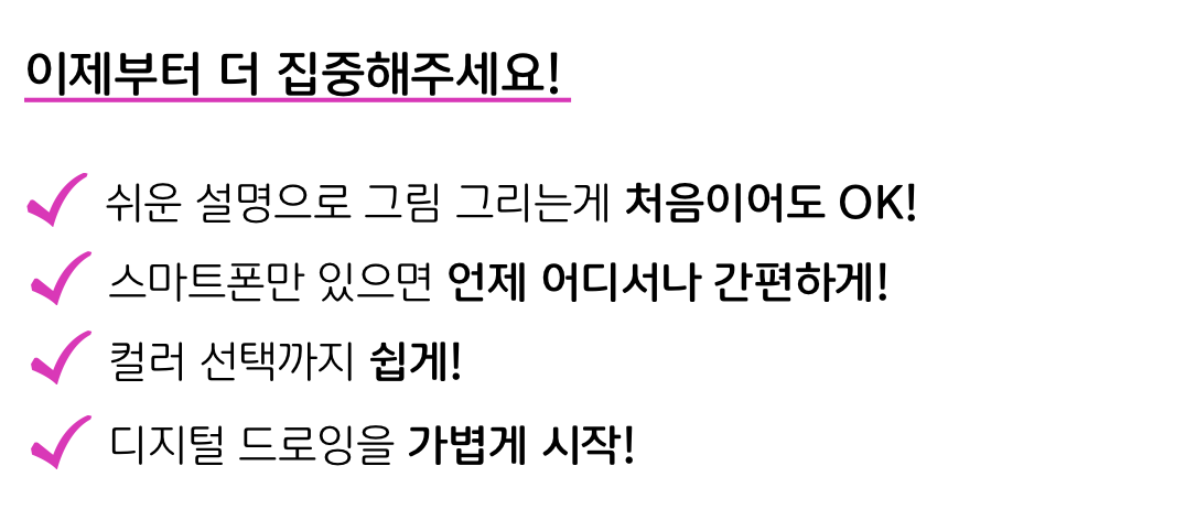 가벼운 마음으로 그림 그리기를 시작하고 싶은 분들을 위한 손가락디지털드로잉의 매력을 느껴보시기를 바랬어요. 함께 한다는 사실에 기쁘고 설레입니다.