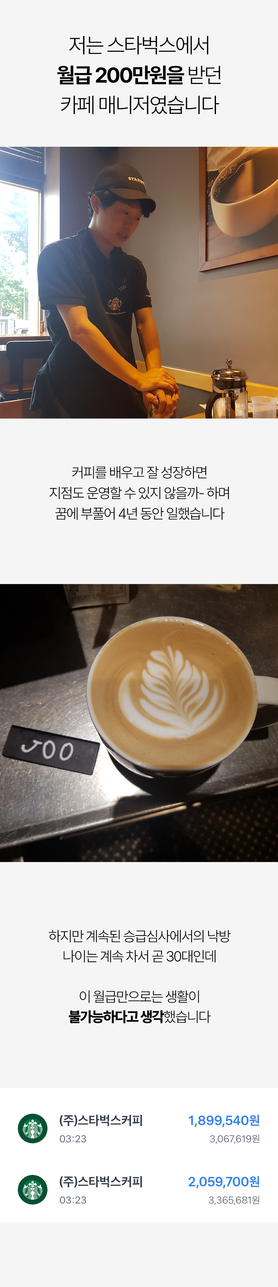 20대 중반~후반 스타벅스 매니저로 4년간 근무