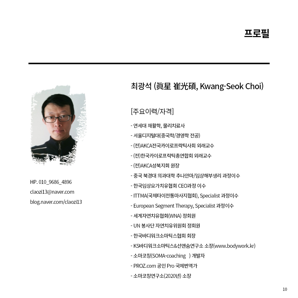진성 최광석입니다. 현재 교정전문가를 위한 오프라인 강의, 의료보건 분야 번역과 집필, 선앤숨 에너지명상과 소마틱스 교육을 진행하고 있습니다.