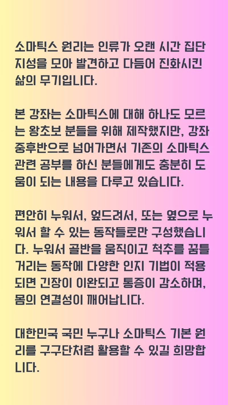 1강01. 소마틱스란 무엇인가? FREE08:42 PLAY