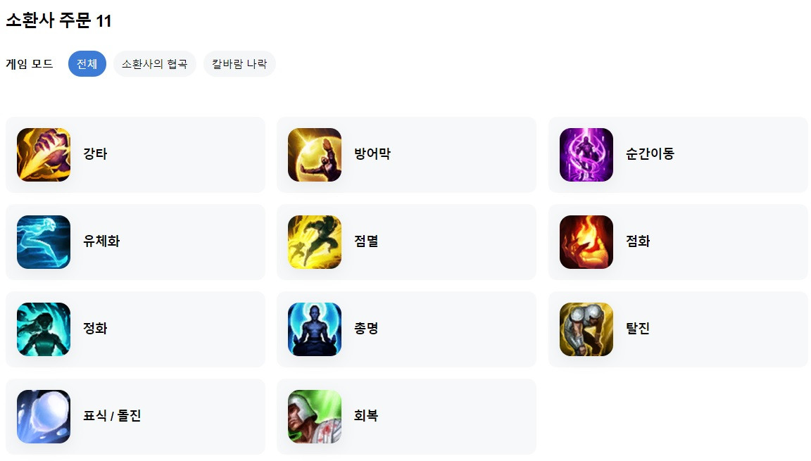 룬, 스펠, 아이템 등