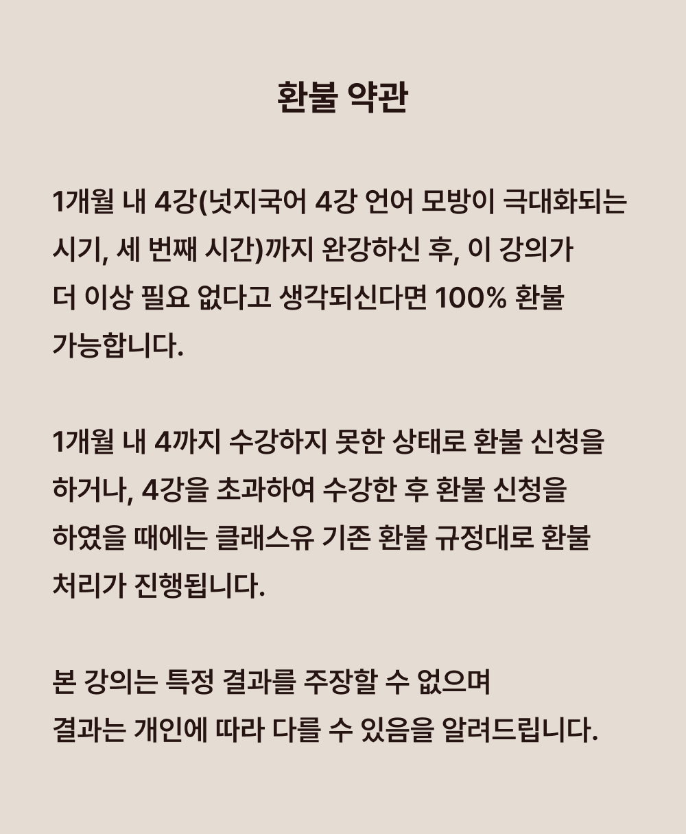 * 수강기간은 결제일부터 시작하나, 결제일 당시 클래스가 개강되기 전이라면, 수강기간은 클래스가 개강한 날로부터 시작합니다.