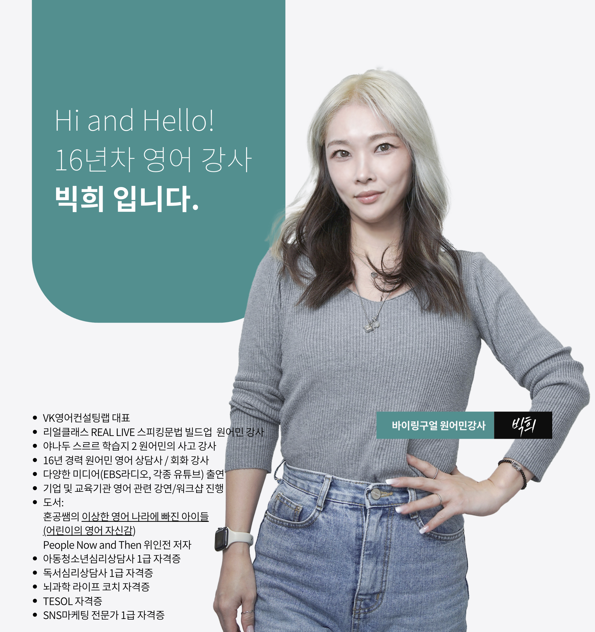 어른이의 영어 호감도+자존감 지킴이 빅희입니다!
