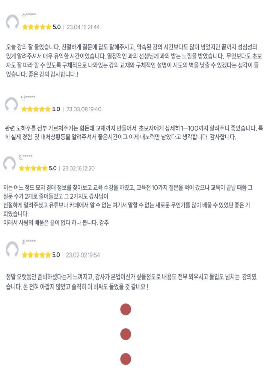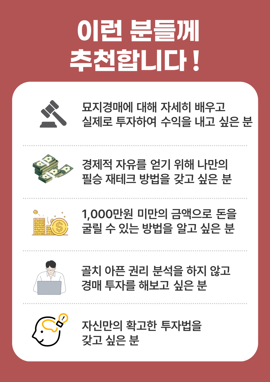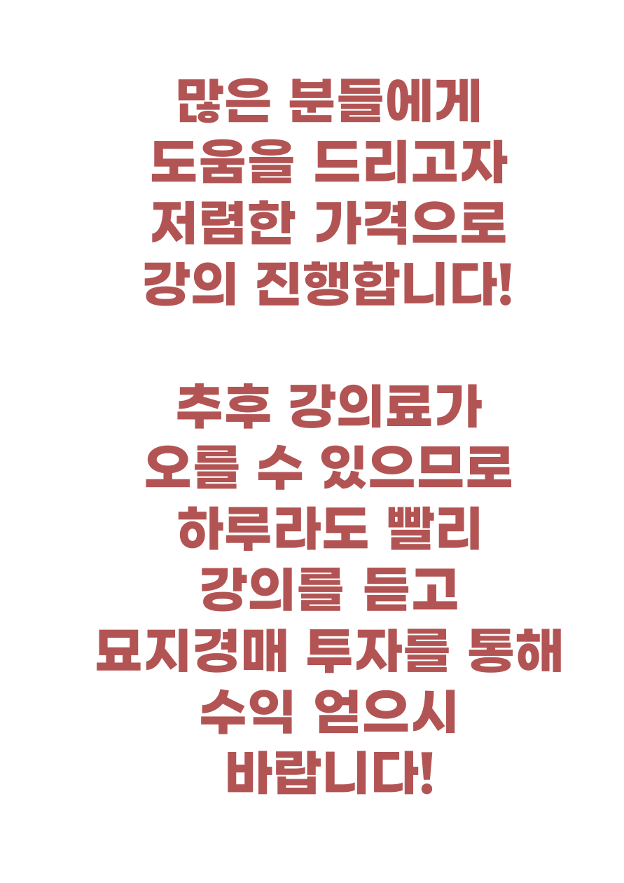 - 묘지경매에 관한 전반적인 과정들과 노하우를 배우게 됩니다.
