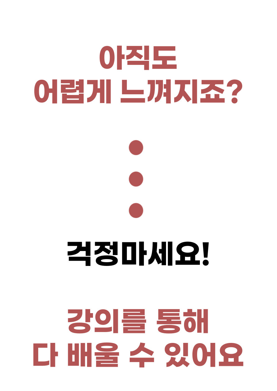 - 수강하신 뒤 실제로 진행하면서 해결하지 못하는 항목들에 대하여서는