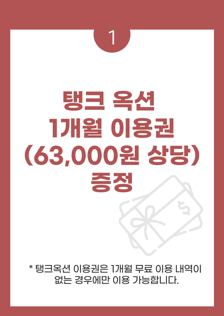 - 별점 5개의 리뷰를 남겨주시면 탱크옥션 1개월 이용권(63,000원 상당)을 열어드립니다.