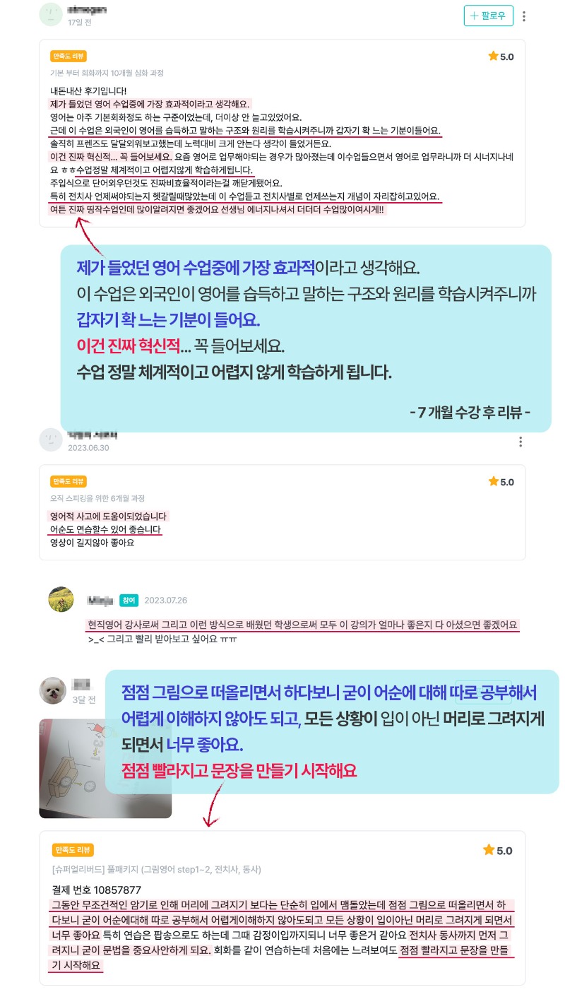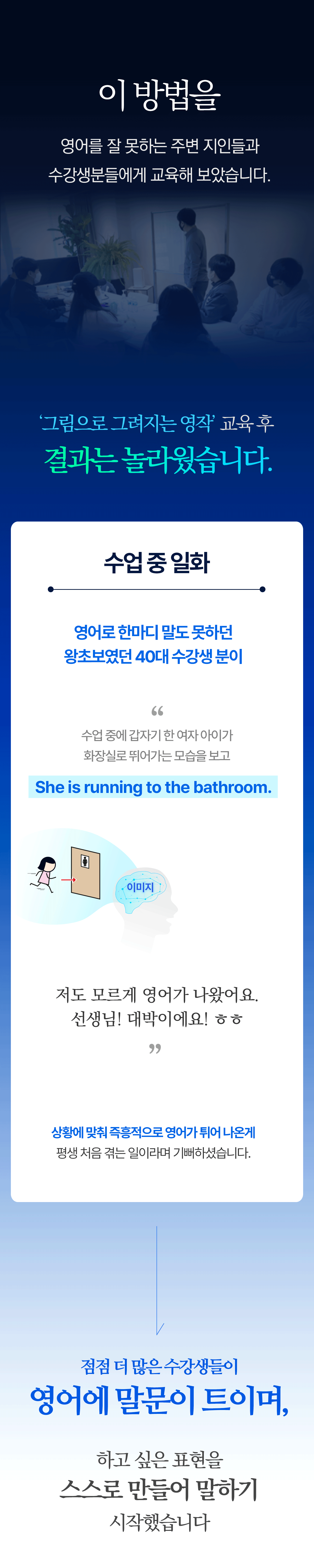 저 또한 이 그림 학습법을 통해서 저 스스로가 놀라울 만큼 빠르게 영어 실력이 향상되었고, 지금도 이 영어식 사고를 활용해서 영어를 모국어 말하듯이 말하고 있습니다.