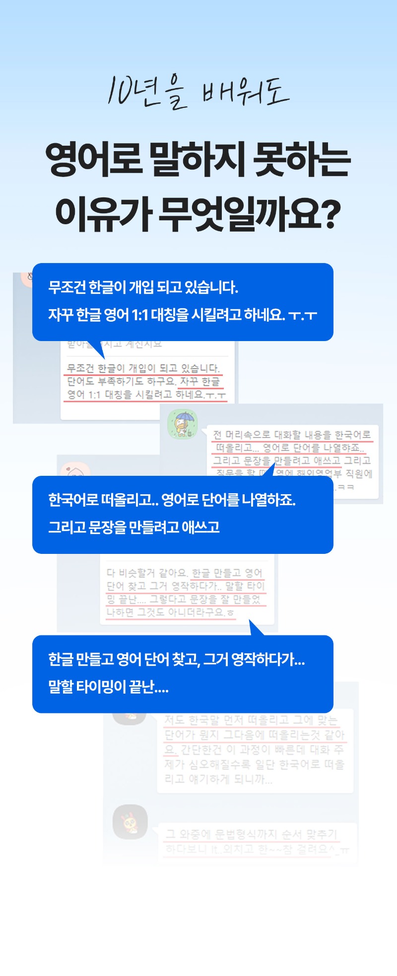그러다 보니성인이 되고나서도 제 영어 실력은 바닥이었고, 특히 영어로 말하는데 어려움이 많았습니다.
