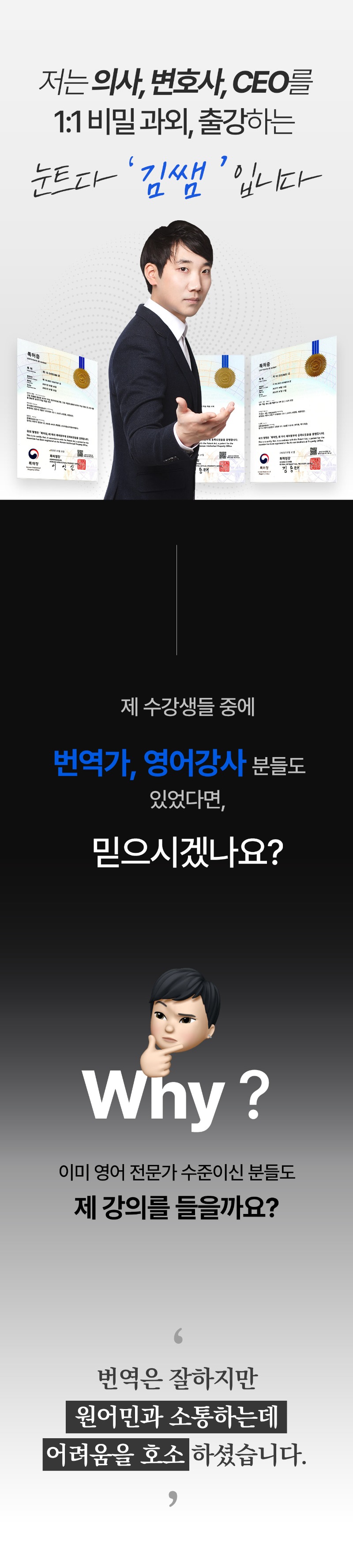 저는 왕초보자가 어떻게 하면 최단기간에 네이티브와 같은 영어를 구사할 수 있을지에 대해 오랜시간 연구했고,