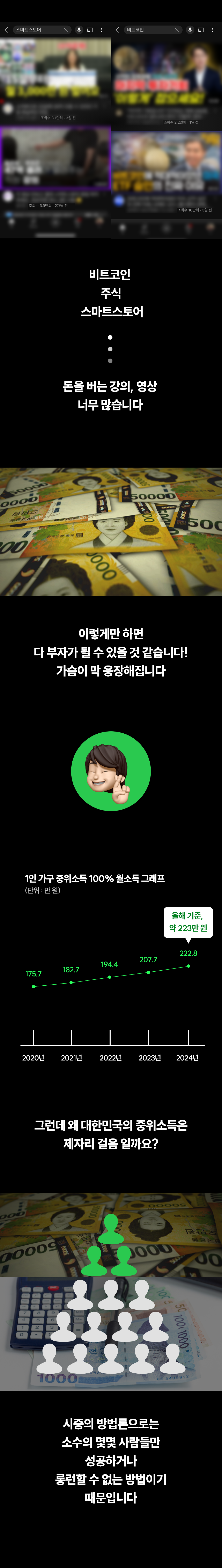 그렇기 때문에 돈 때문에 힘들거나, 돈을 올바르게 공부해서 진정으로 경제적인 자유를 원하는 사람들에게올바른 돈 관리에 대한 가치를 전달하고 싶습니다.