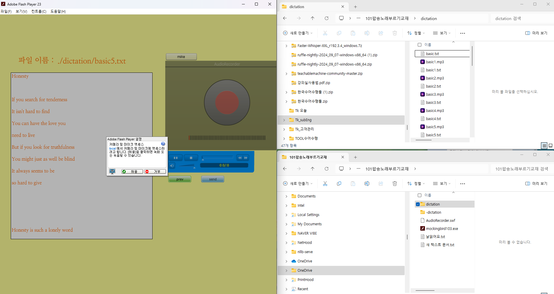 소스언어인 한국어가요를 연습하는 툴을 제공하며(아래관련화면)