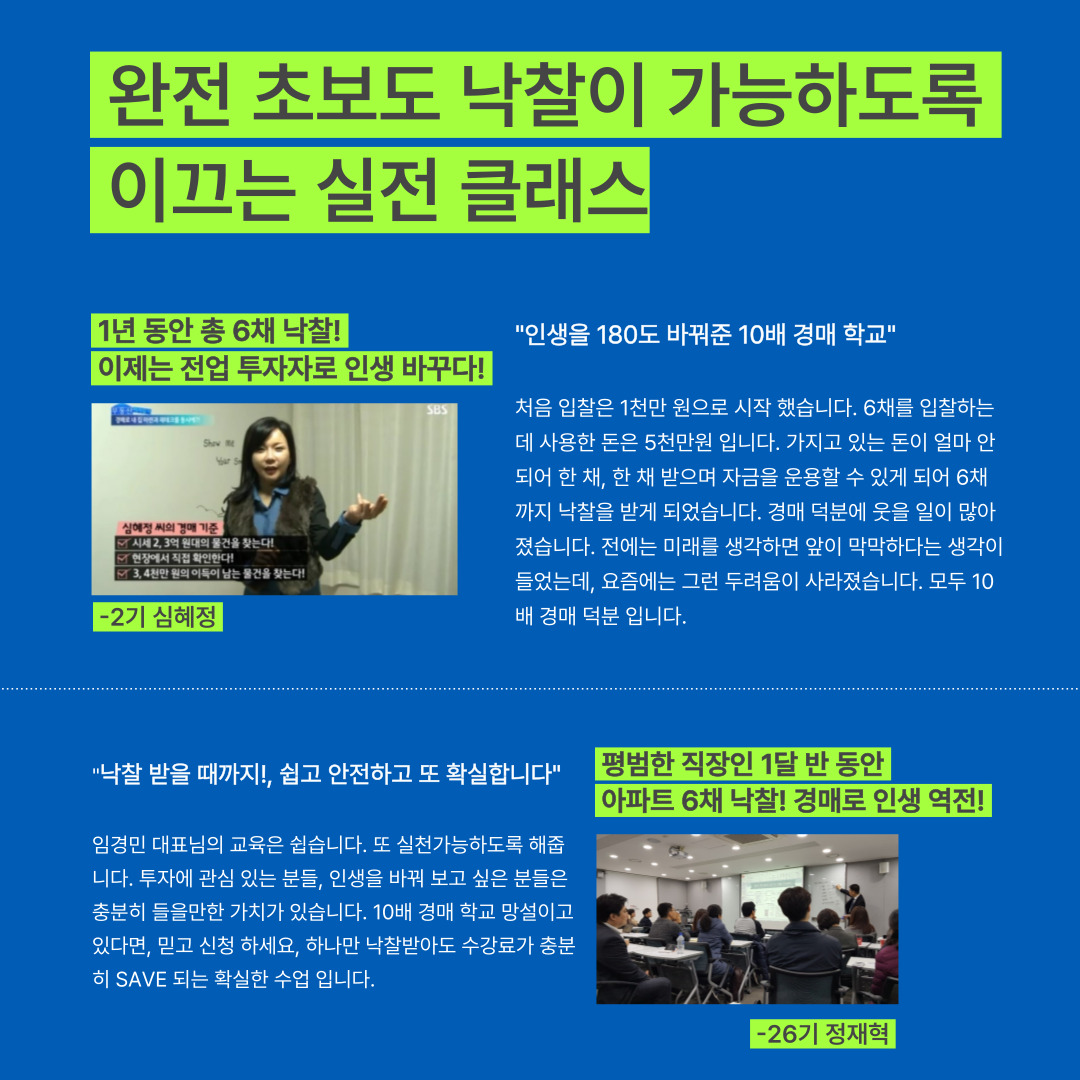 10배 경매학교 운영 (현재 126기 진행 중),