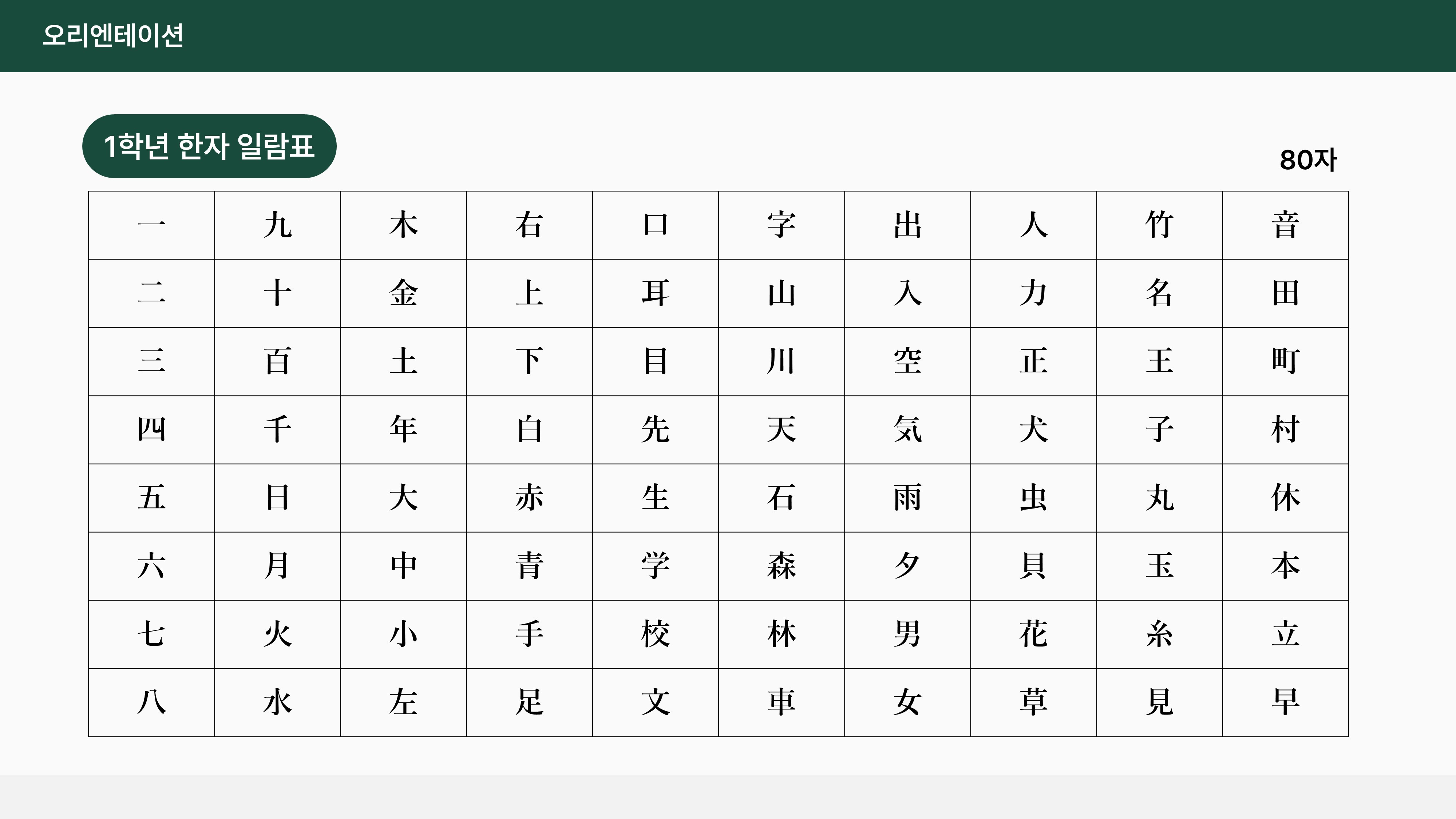 일본어상용한자 초등1학년 80자를 배울 수 있습니다.