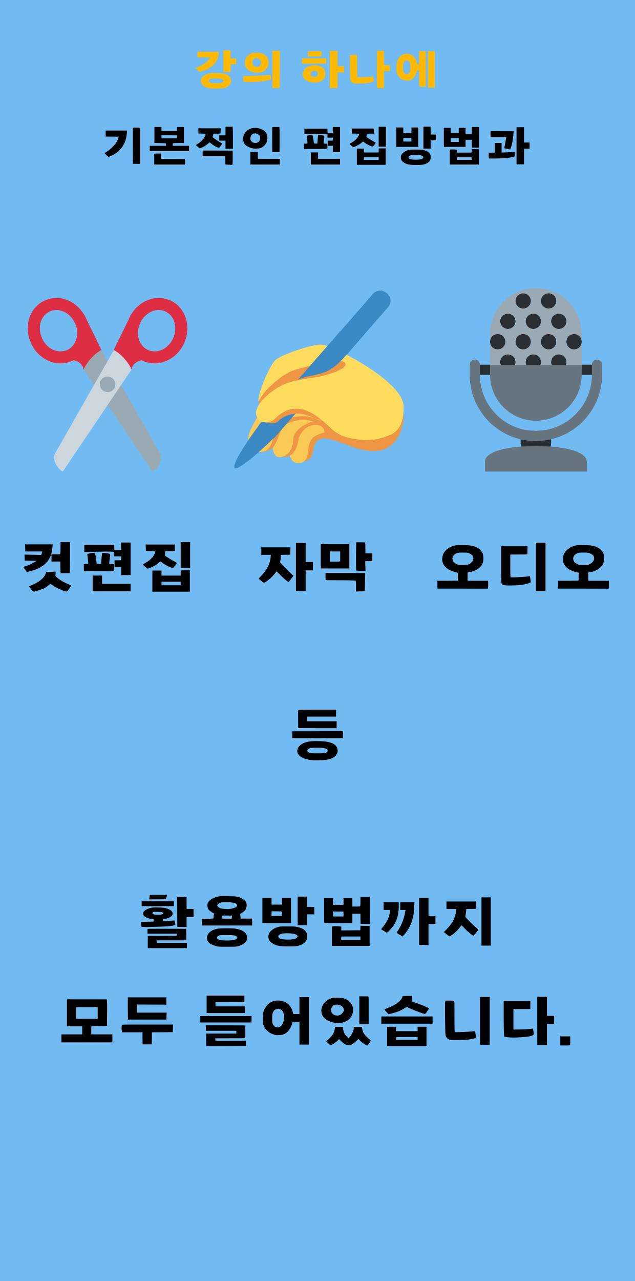 그 과정에서 영상편집 부분을 연구하고 노하우를 담아 이 강의를 개설하게 되었습니다.