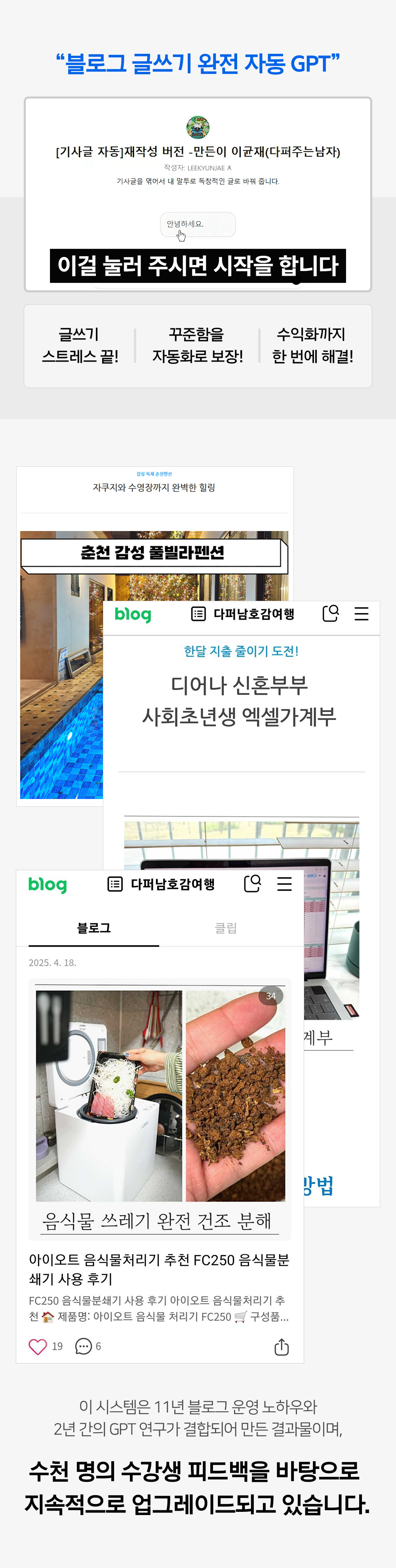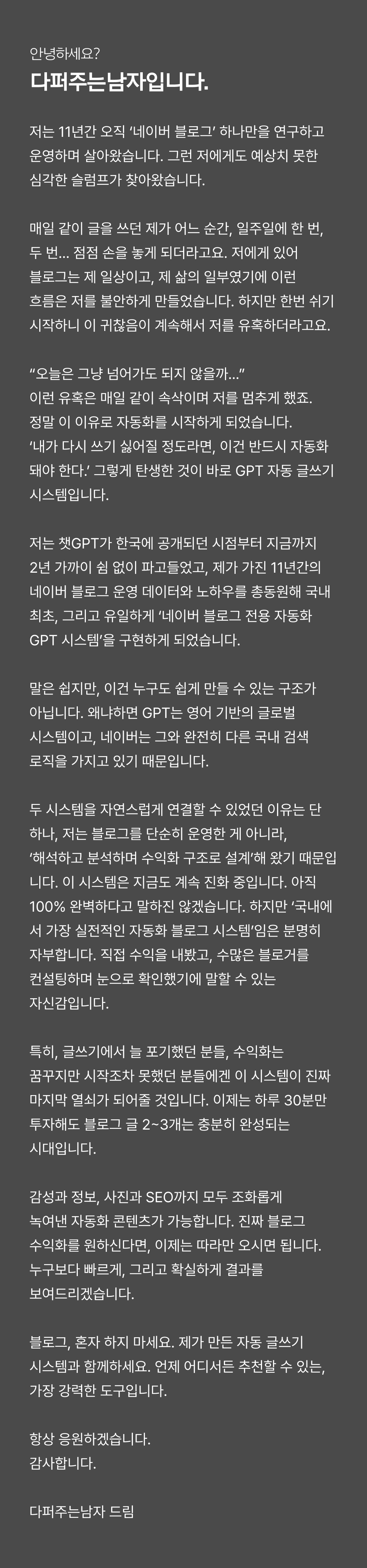 하지만 ‘국내에서 가장 실전적인 자동화 블로그 시스템’임은 분명히 자부합니다.