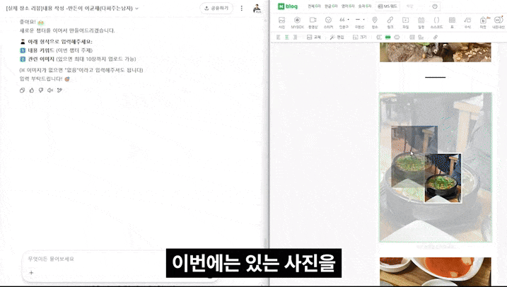 감성과 정보, 사진과 SEO까지 모두 조화롭게 녹여낸 자동화 콘텐츠가 가능합니다.