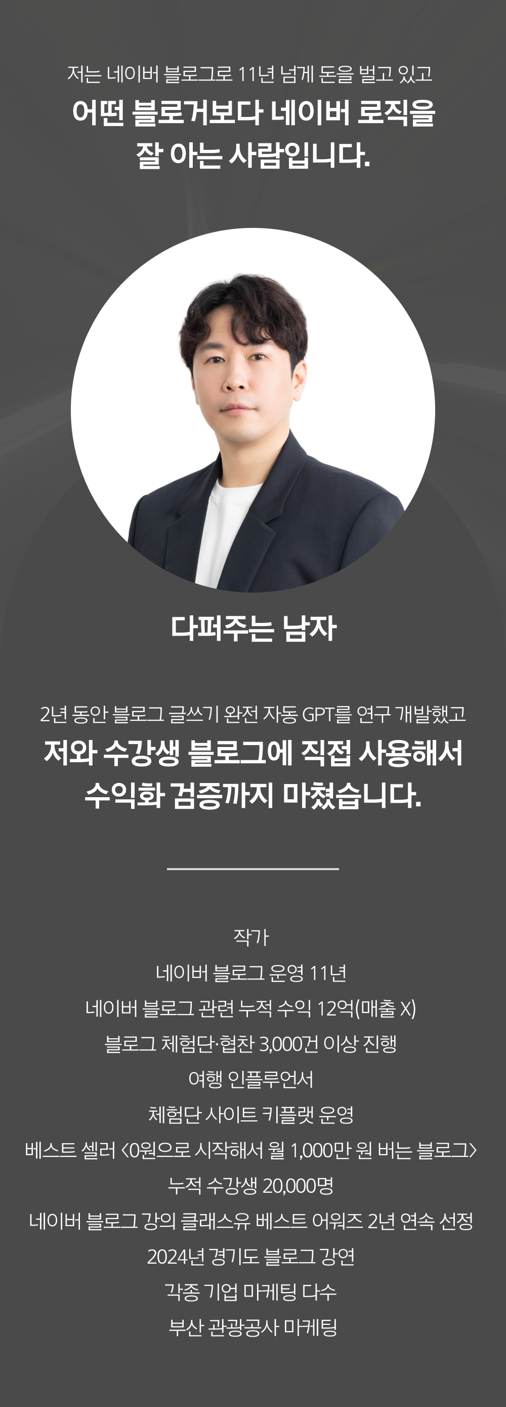 직접 수익을 내봤고, 수많은 블로거를 컨설팅하며 눈으로 확인했기에 말할 수 있는 자신감입니다.