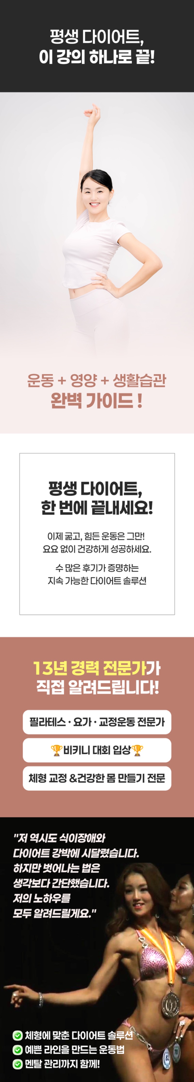 여러분에게 운동의 즐거움과 삶의 행복을 전도하고 건강하고 탄탄한 라인만들기 까지 도와드릴 비키니대회 수상, 필라테스, 요가, 교정운동 전문가 정지혜입니다.