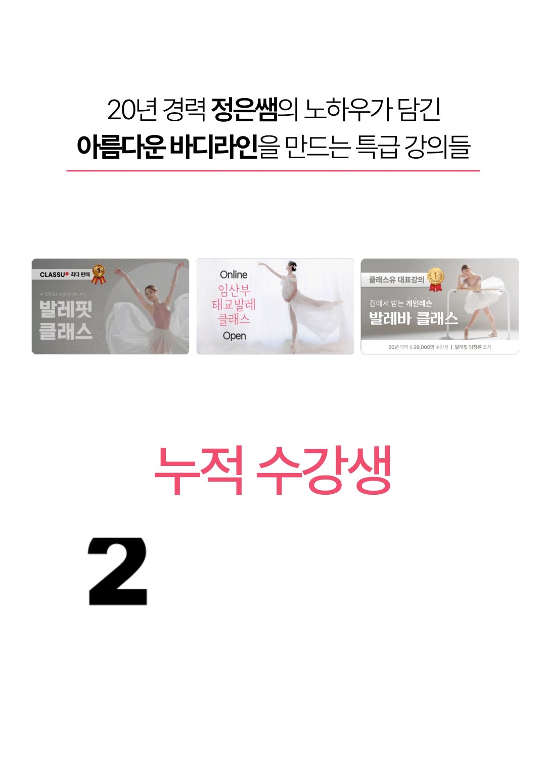 현재 온라인 강의 플랫폼 클래스유에서 평점 4.9점의 바디라인 발레핏 클래스와 임산부 발레 클래스로 누적 수강생 2만 4천명을 넘기며 대표 강사로 활약 중이다.