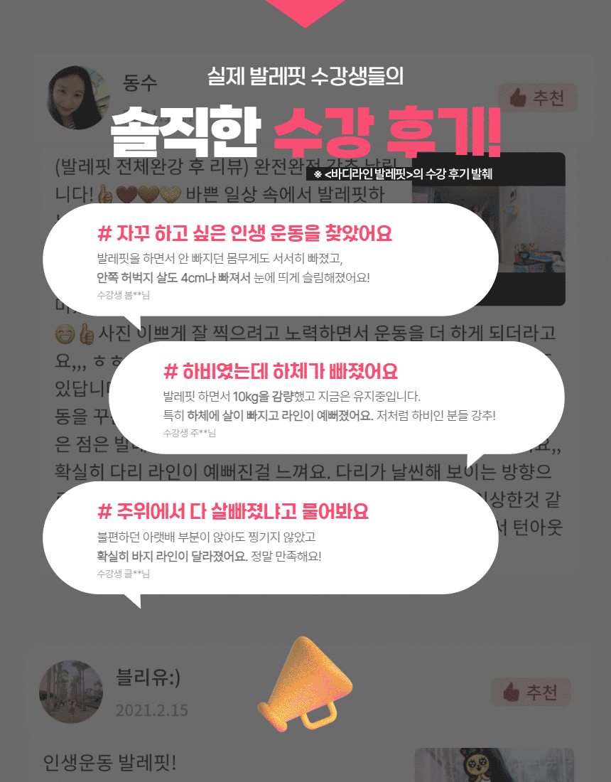 수강생들의 2천개가 넘는 후기에는 "이렇게 꾸준히 한 운동은 처음이에요.', '정말 재밌어요!", "인생 운동이에요, 바지핏이 달라졌어요!",