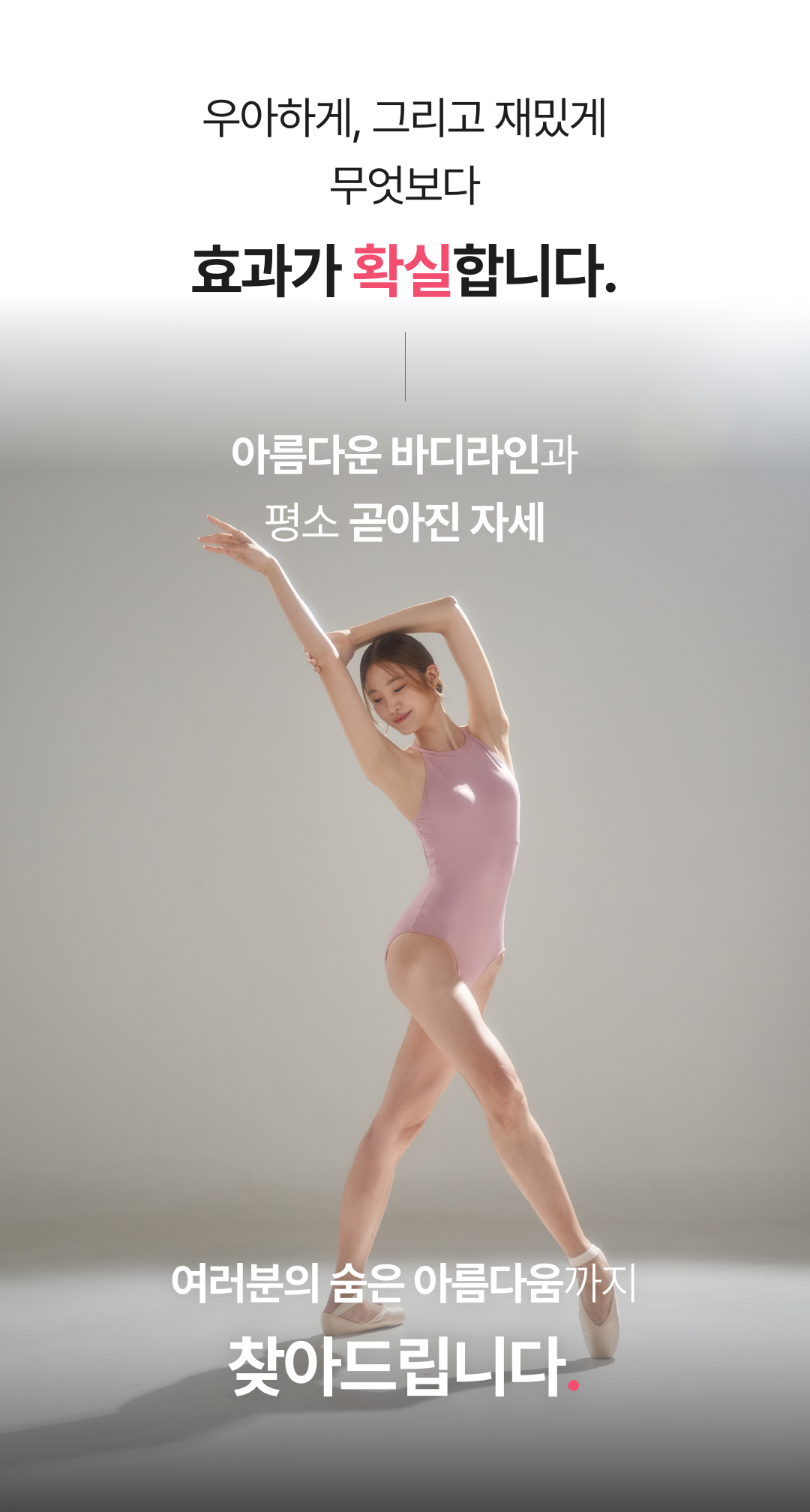 근력과 유연성이 전혀 없어도 고급 예술인 발레를 집에서 누구나 쉽고 합리적인 가격으로 배울 수 있도록 동작과 커리큘럼을 직접 연구하며 발레핏 클래스를 운영하고 있다.