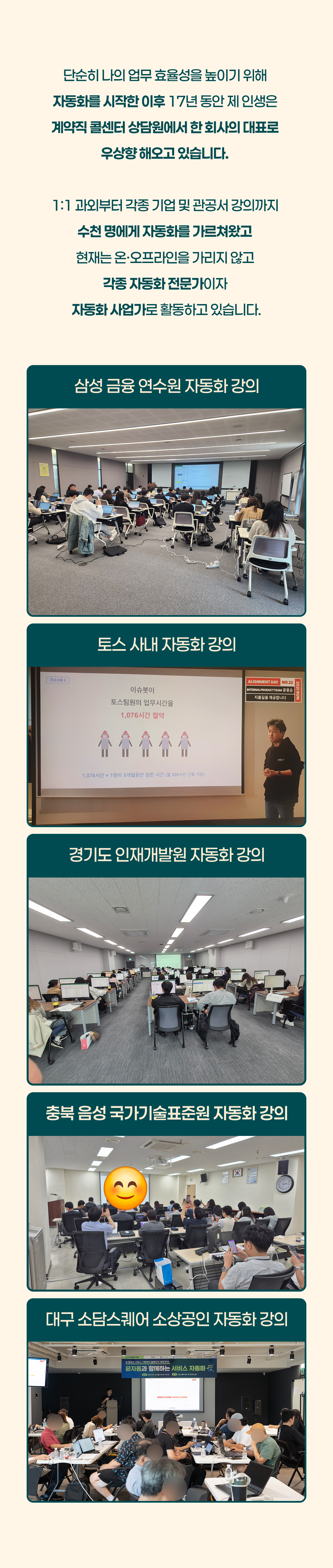 10년 넘게 여러 회사에서 자동화 실무경험과 수백건의 개발 외주를 통해