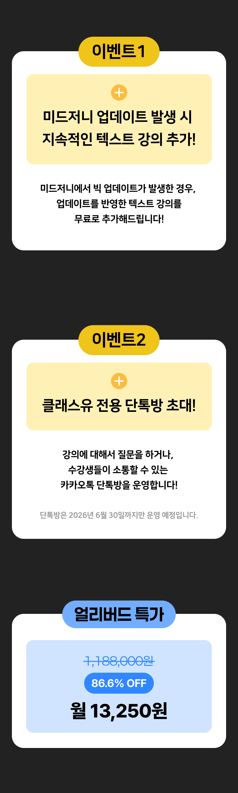 - 수강 기간 3개월 , 12개월 수강권 중 선택