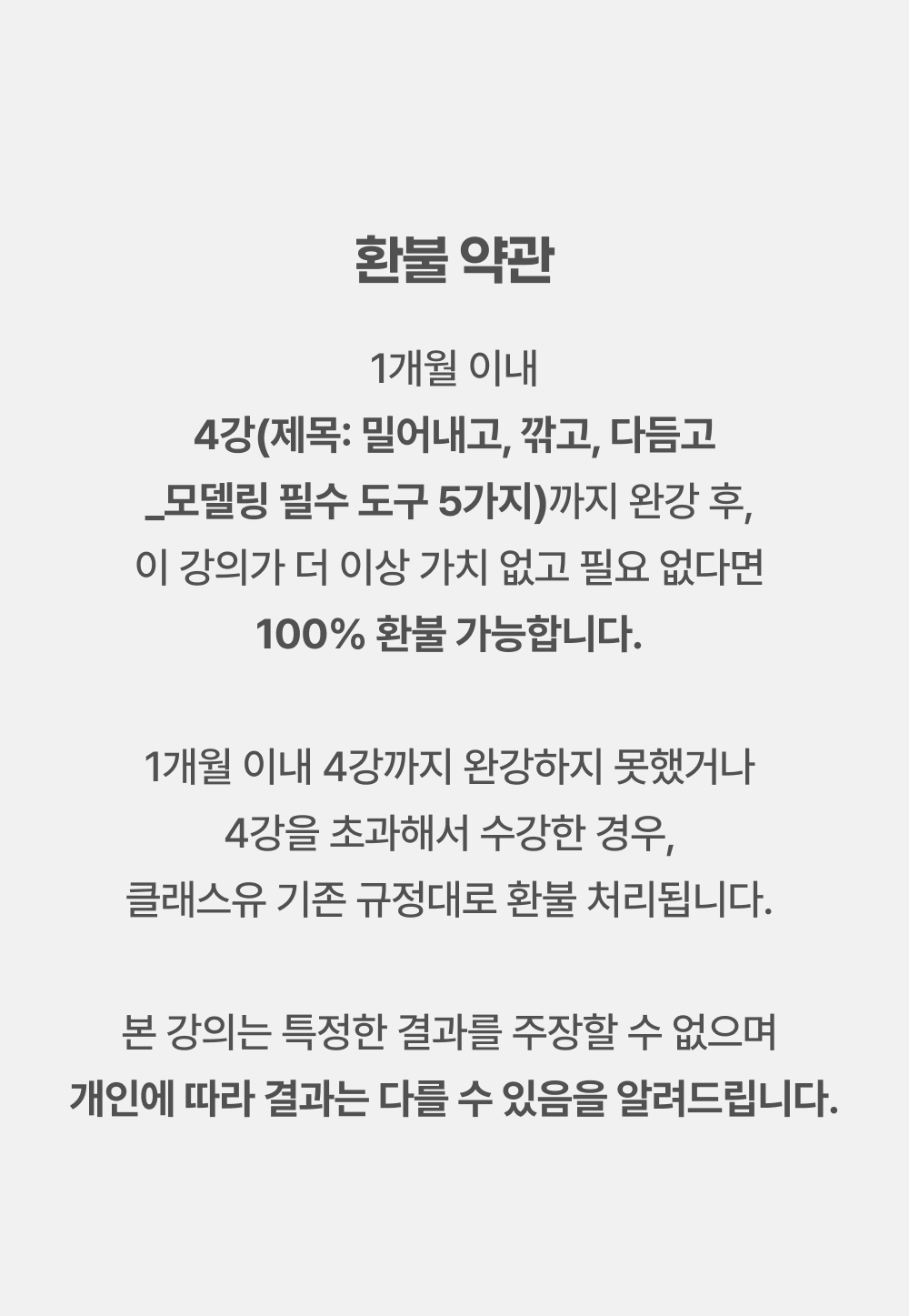 1개월 이내 4번째 강의(제목: 밀어내고, 깎고, 다듬고_모델링 필수 도구 5가지)까지 완강 후,