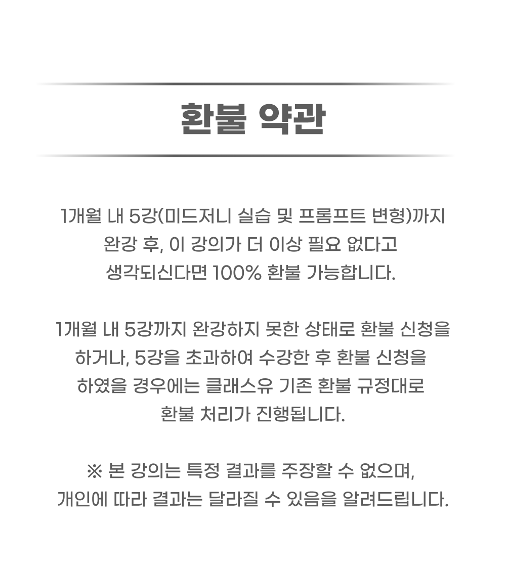 이 강의가 더 이상 필요 없다고 생각되신다면 100% 환불 가능합니다.