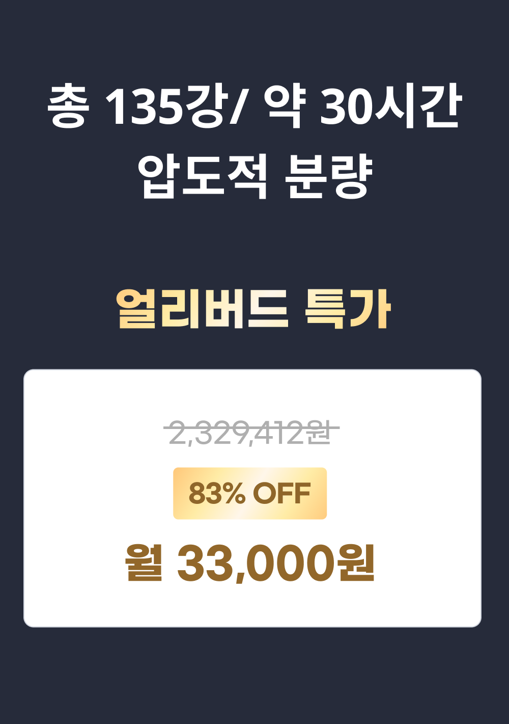 총 135강/ 약 30시간 압도적 분량으로 구성되어 있습니다!