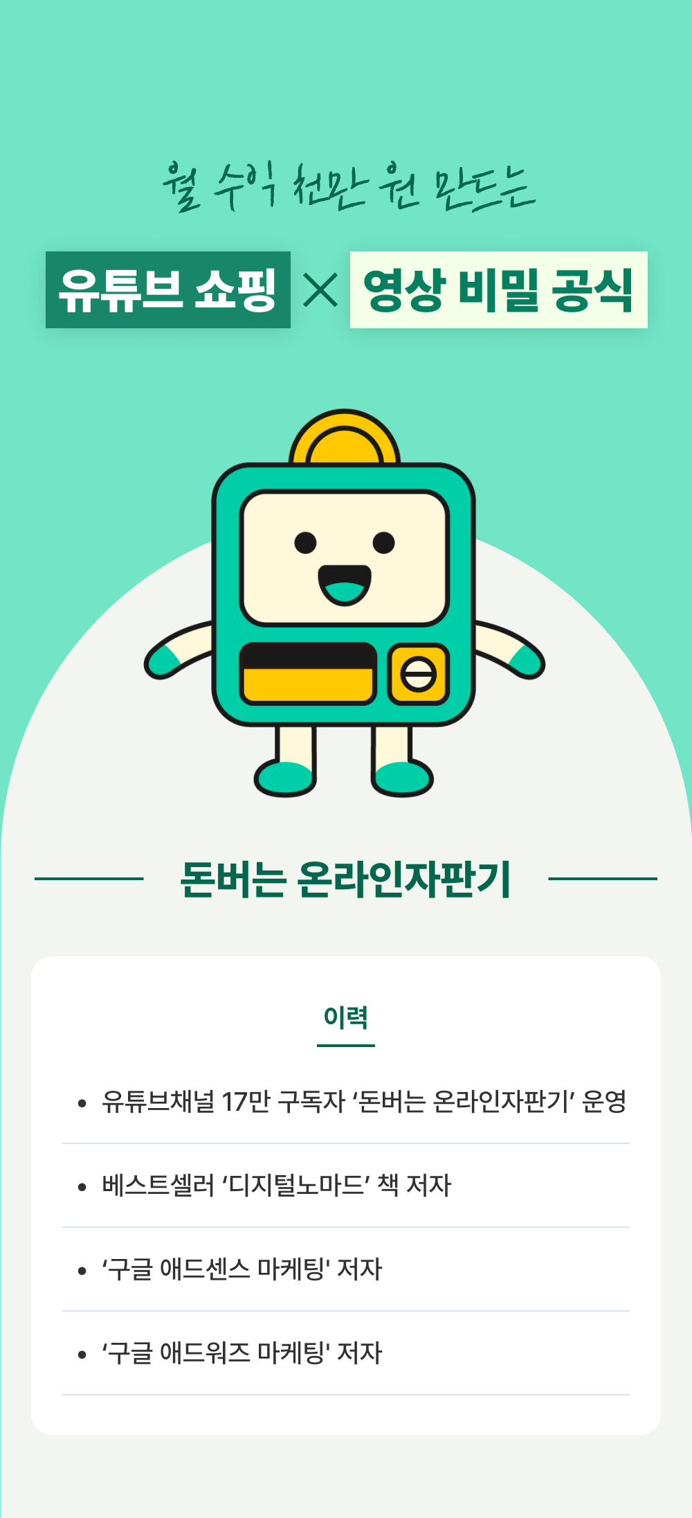 유튜브 돈버는 온라인 자판기 채널 운영자 입니다