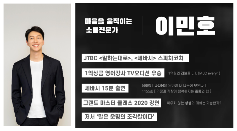 대한민국 대표 영어강사이자, JTBC말하는대로와 세바시의 스피치코치로써 무대에서는 연예인, 교수, 전문가들이 진실된 내용을 시청자들에게 공감가게 전달하도록 돕고있다.