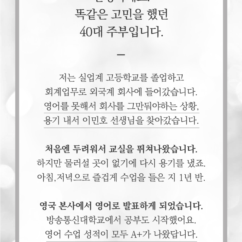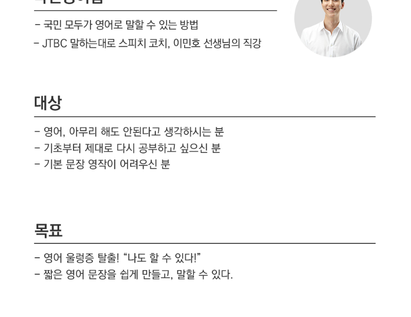 영어강사 TV오디션 우승자 / JTBC말하는대로, 세바시 스피치 코치 / 클래스유 영어부문 누적수강생 1위