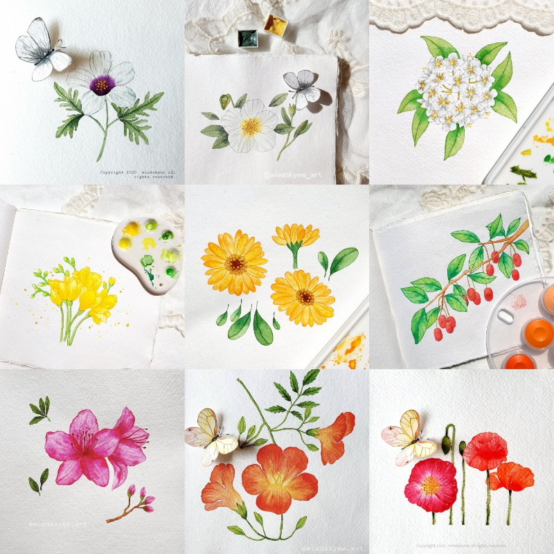 저는 수채화로 풍경과 꽃을 그리고 그 그림으로 문구류를 만들고 있어요.