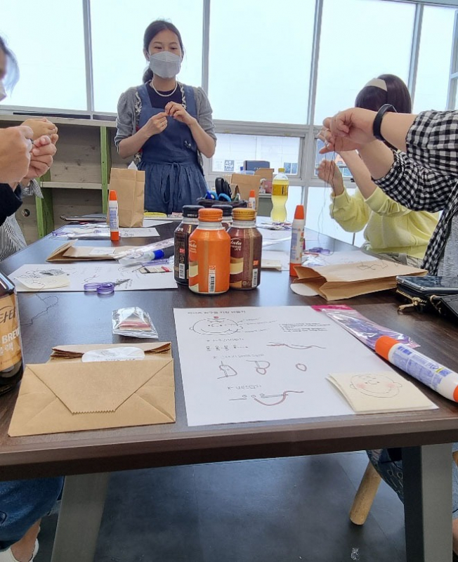 따뜻한 그림을 그리고 포근한 원단에 알록달록 실로 수를 놓는 작업실시옷입니다.