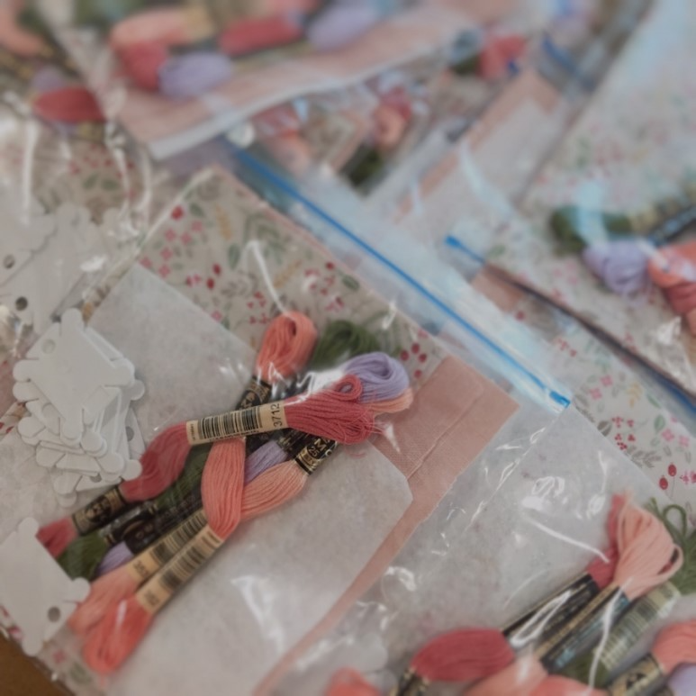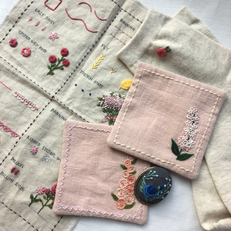 구성한 꽃자수가 들어간 샘플러를 만들며