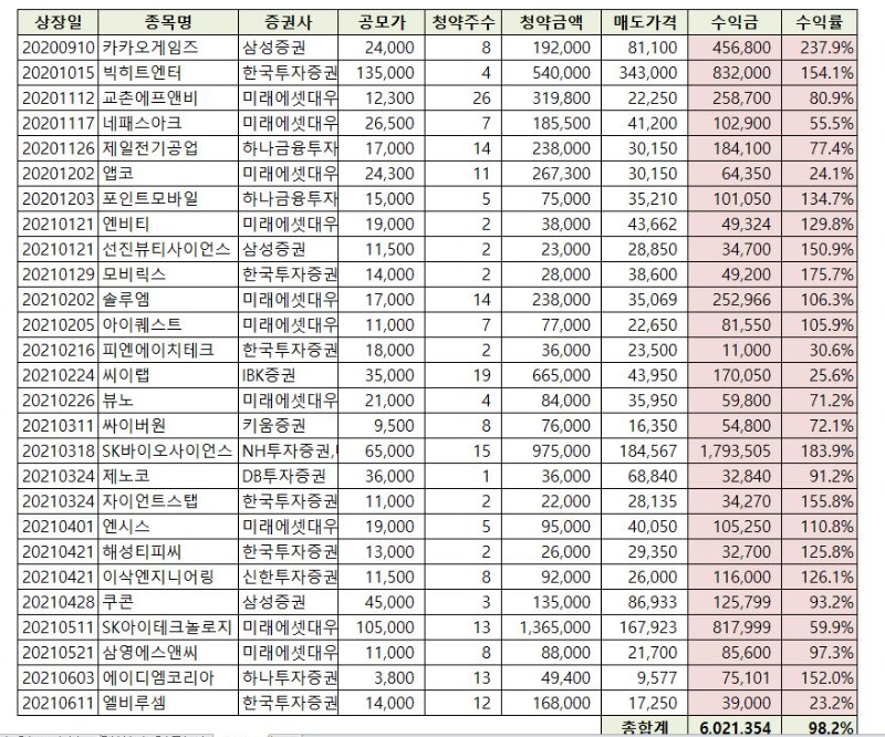 1) IPO 수익