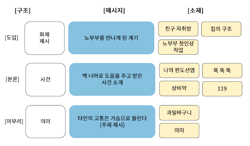 그리고 글의 구조와 소재에 대해 이야기합니다.