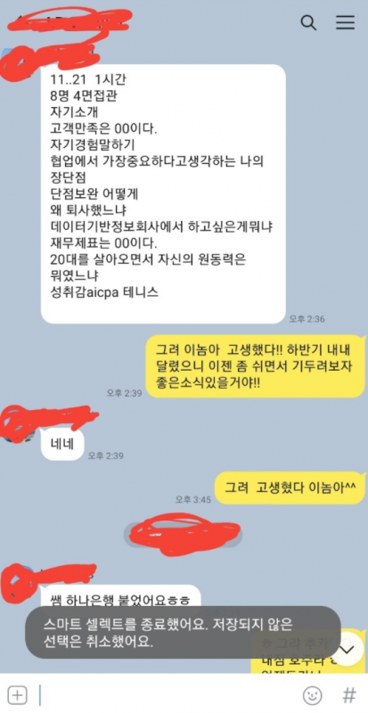 면접에 임했지만 짧은 기간 많은 것을 바꾸고