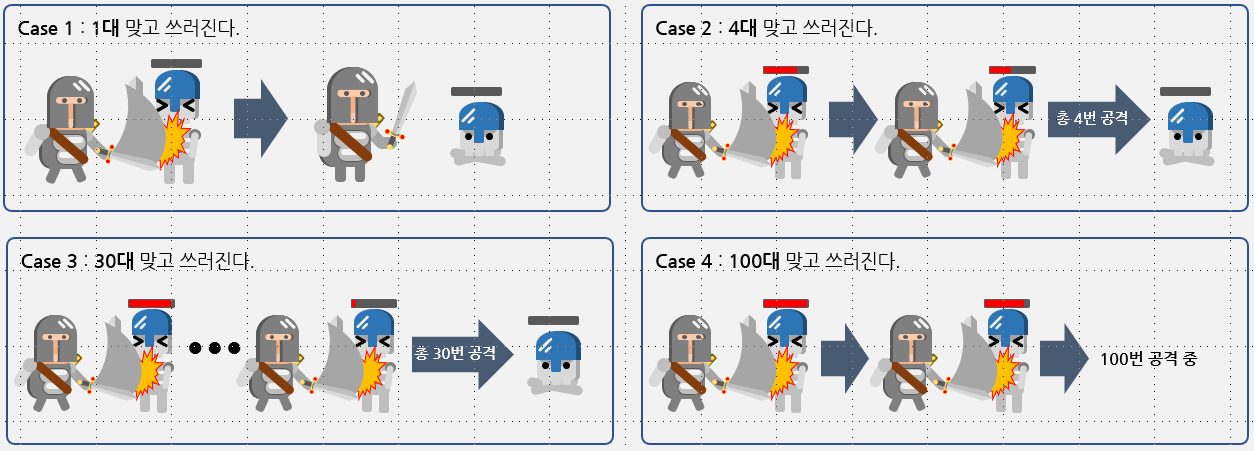 밸런스가 게임의 끼치는 영향에 대해 설명하고, 몬스터가 몇 번 맞고 죽어야 적당한지 정합니다.