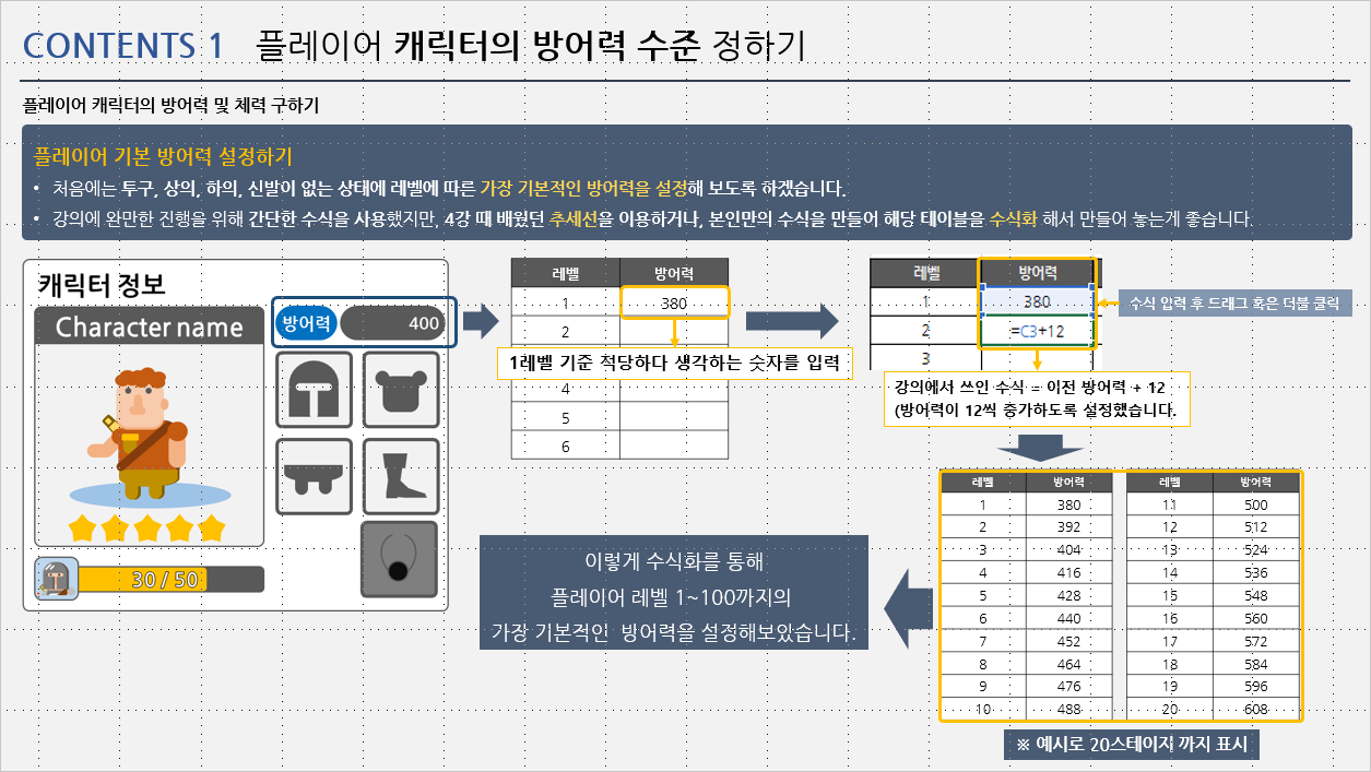강의를 보고 직접 수치를 맞춰보면서 전투 밸런스를 맞추는 방법을