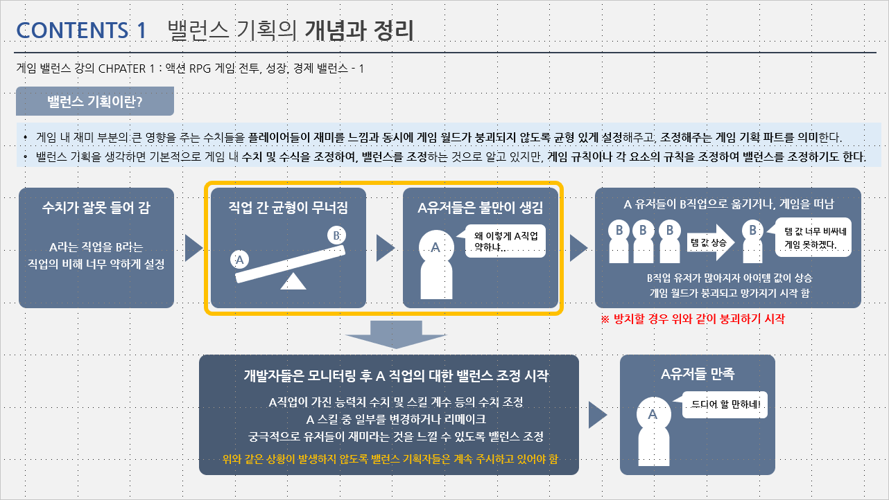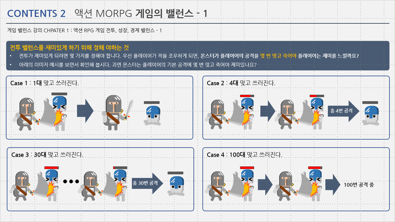 전투 밸런스가 무엇인지, 전투 밸런스에 필요한 요소들을 알게 됩니다.