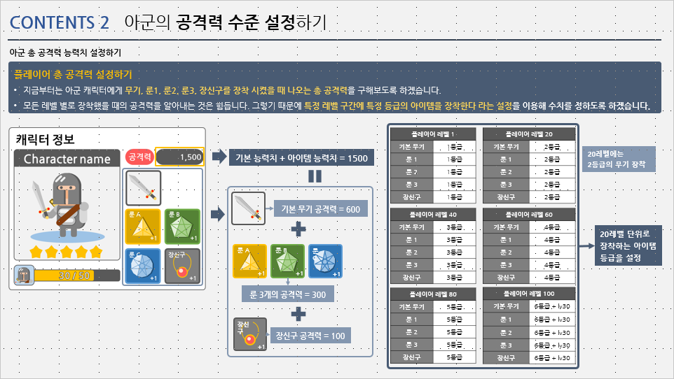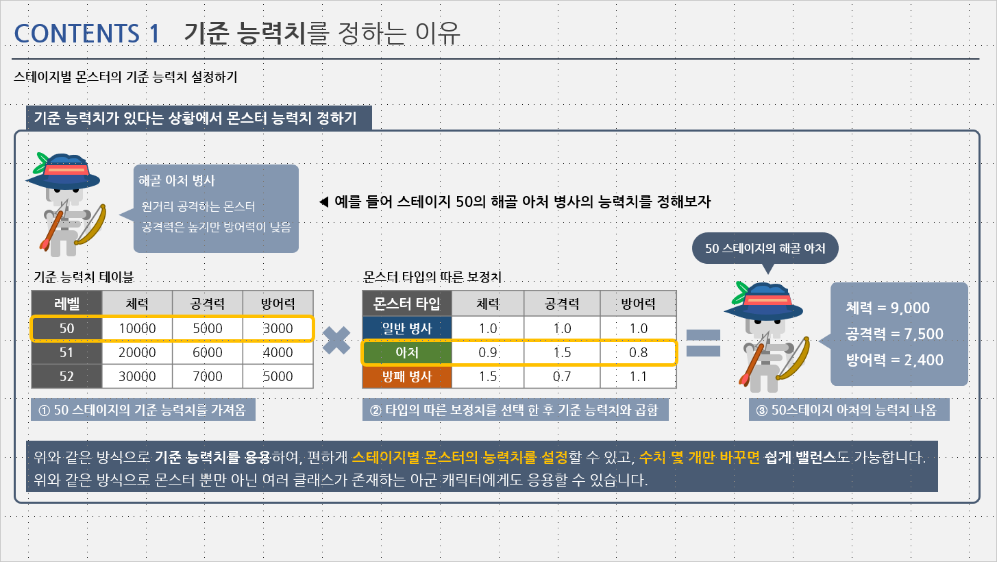 전투 밸런스를 맞추기 위한 여러 기준을 세우는 방법을 알게 됩니다.